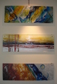 Set of three acrylic sheets, contemporary art using epoxy, tints, and metallics.